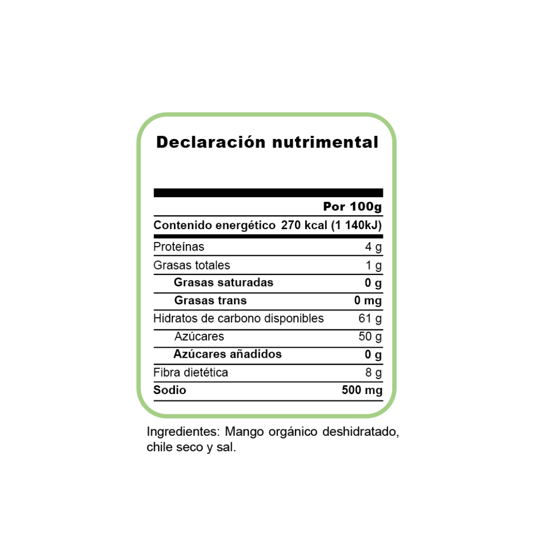 Mango orgánico deshidratado y mezcla de chiles secos.