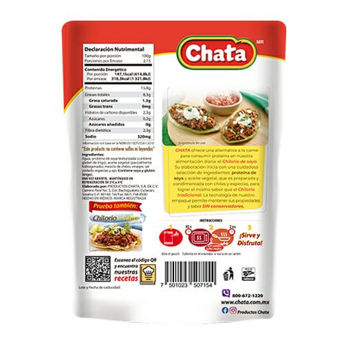 El Chilorio de Soya es nuestra versión saludable y sin carne del platillo original de la casa. Conservamos nuestra receta tradicional sinaloense con ingredientes de la más alta calidad y nuestra mezcla única de chiles y especias. En su presentación de 215 g está listo para calentar y servir en cualquier momento.
