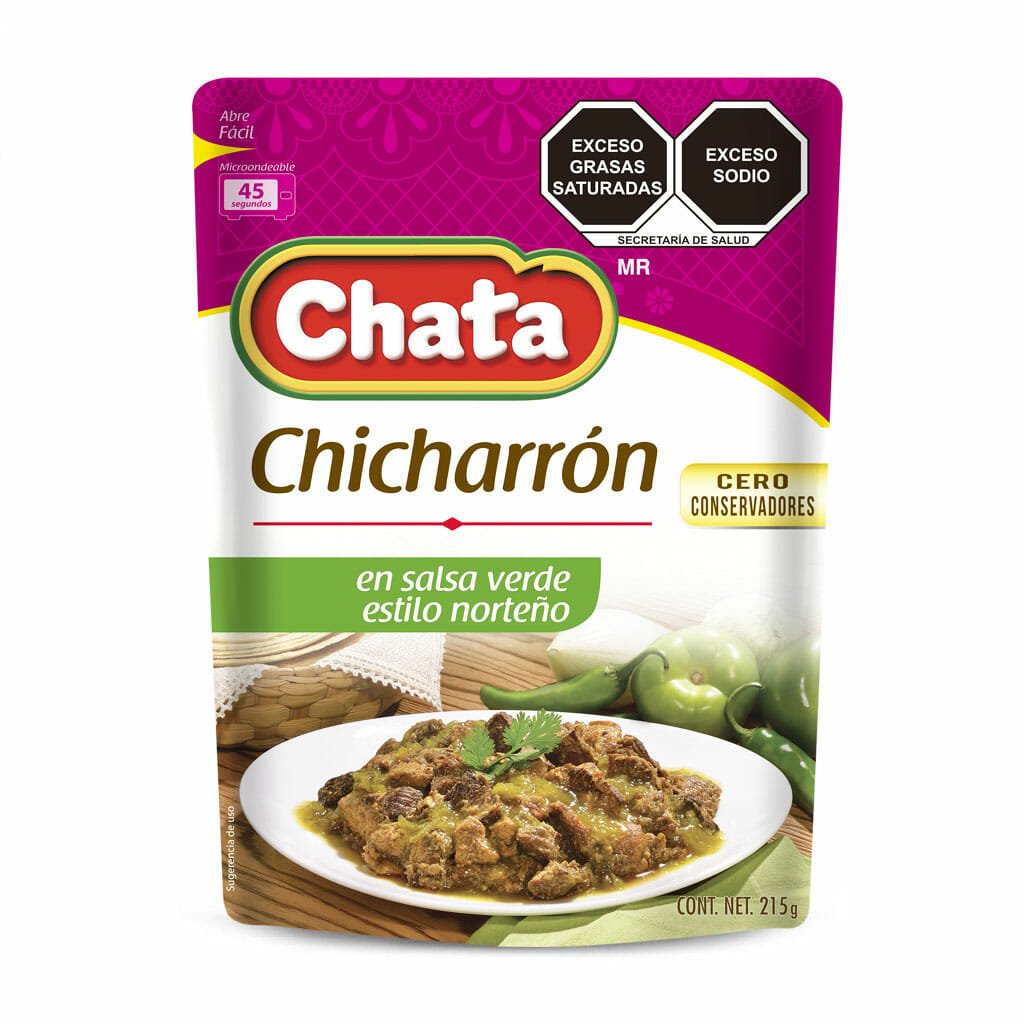 En una olla fríe el Chorizo Reserva de la Casa Chata, vierte las salsa, sazona con el consomé de pollo. Deja cocinar por 5 minutos, añade el chicharrón previamente remojado, cocina hasta que hierva y sirve.